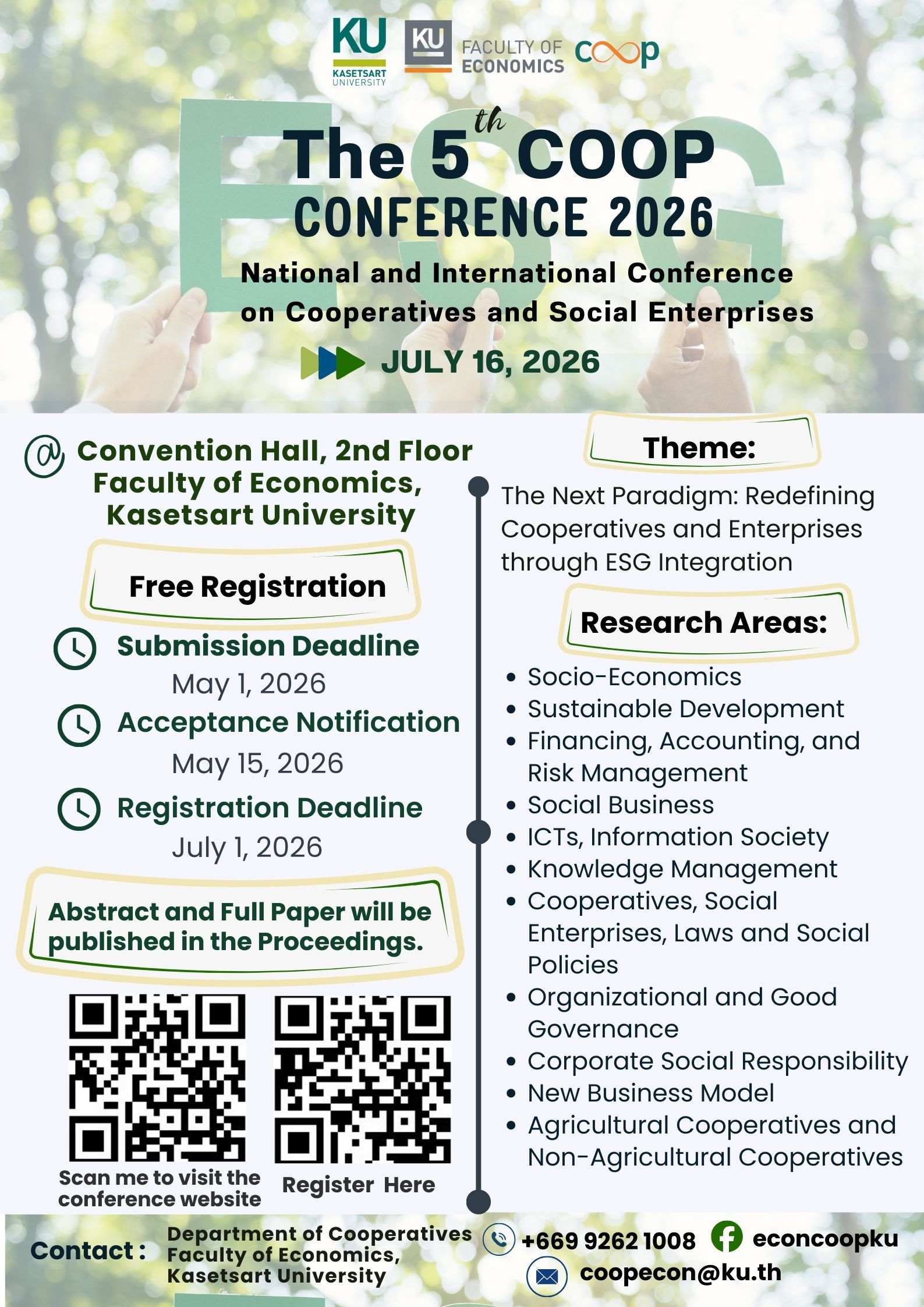 ขอเชิญร่วมส่งผลงาน และเข้าร่วมการประชุม The 5th COOP Conference 2026