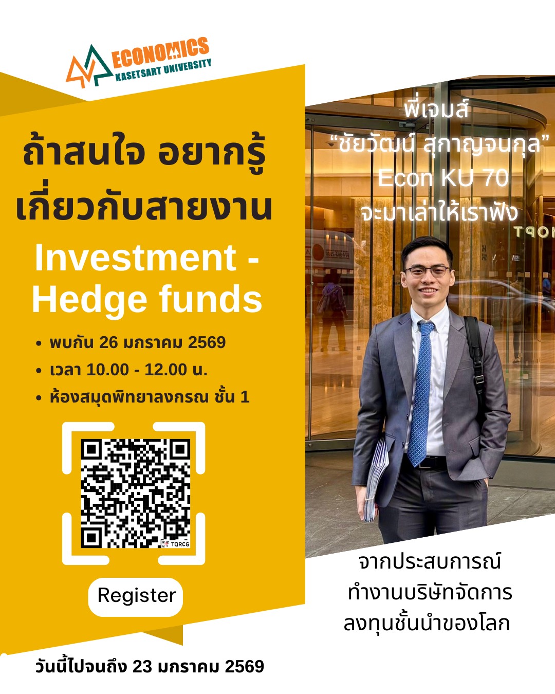 ⏰ ในวันจันทร์ที่ 26 มกราคม 2569 ลงทะเบียน 08.30 น. | เริ่มเสวนา 09.00–12.00 น.