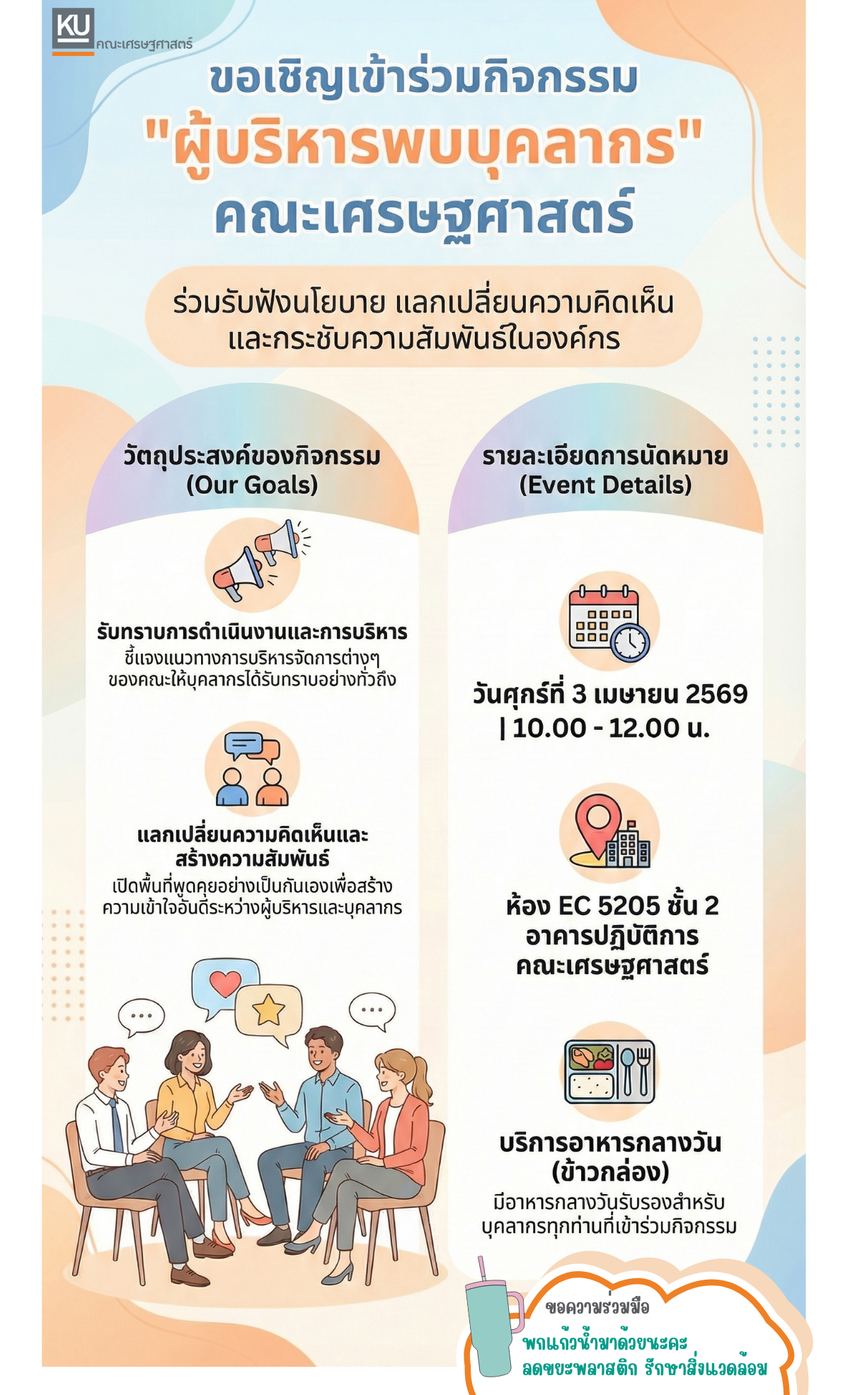 📍 ห้อง EC 5205 ชั้น 2 อาคารปฏิบัติการ (อาคาร 5) คณะเศรษฐศาสตร์ มหาวิทยาลัยเกษตรศาสตร์