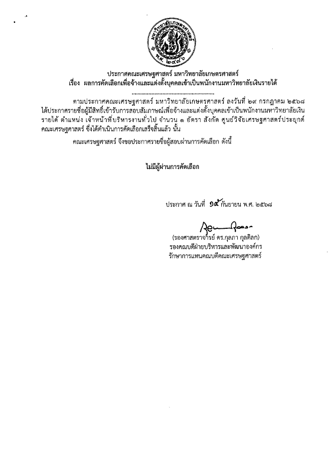 ประกาศผลการคัดเลือกเพื่อจ้างและเเต่งตั้งบุคคลเข้าเป็นพนักงานมหาวิทยาลัยเงินรายได้ ตำแหน่งเจ้าหน้าที่บริหารงานทั่วไป